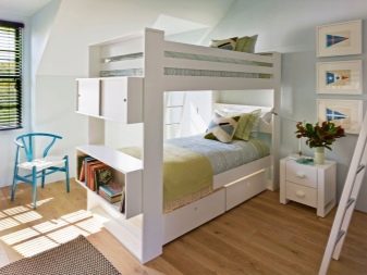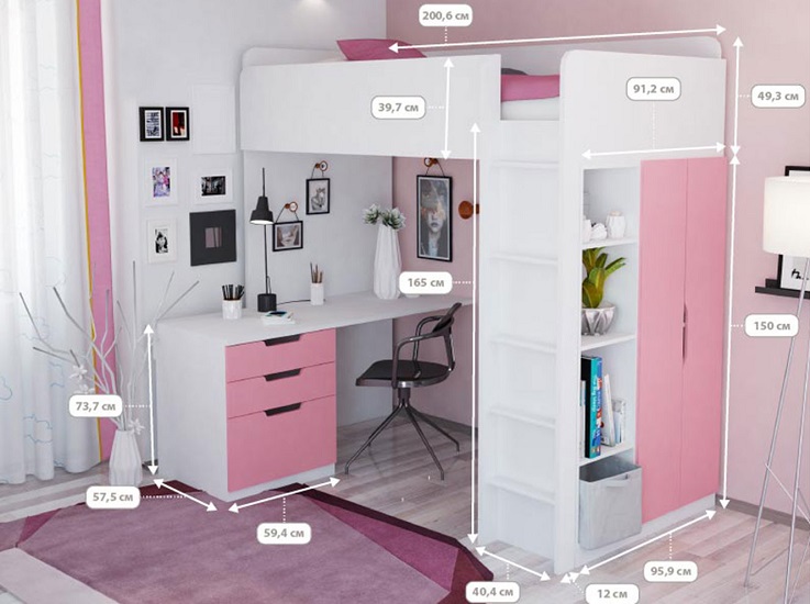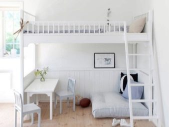 لمن هذا. من الأفضل شراء سرير "علية" للأطفال الصغار حتى سن 5-6 سنوات مع مساحة للعب أدناه. الأسرة العلوية مع منطقة الدراسة مناسبة لأطفال المدارس. بالنسبة للبالغين ، يُفضل استخدام الخيارات التي تحتوي على سرير سفلي إضافي أو سرير سفلي مجاني وفقًا لتقديرك الخاص.