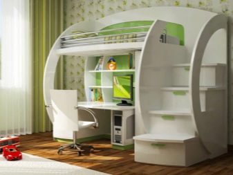نماذج الأسرة العلوية متوفرة في تصميمات مختلفة. يمكنك اختيار سرير مرتفع بشكل منفصل ، أو شرائه مع الأثاث اللازم - "اثنان في واحد". كل هذا يتوقف على احتياجات المشتري. يمكن استكمال سماعة الرأس بـ: