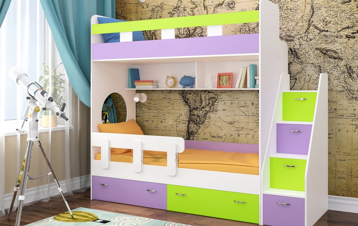 تصميم الأسرة العلوية للأطفال غني في الشكل واللون. يمكن اختيار نماذج مشرقة ومبتكرة للأطفال والمراهقين.
