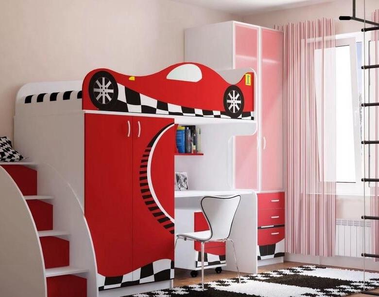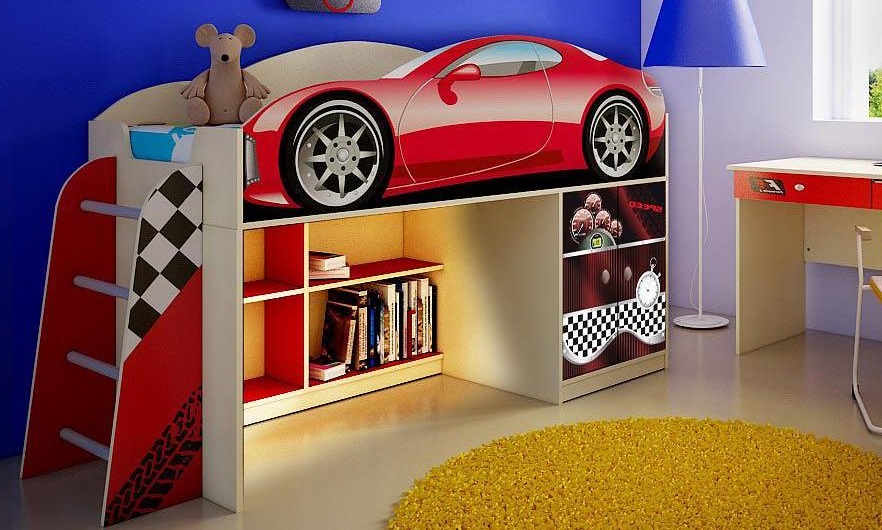سيقدر الدراجون الشباب على الفور سرير السيارة الأحمر مع لعبة الداما بالأبيض والأسود.