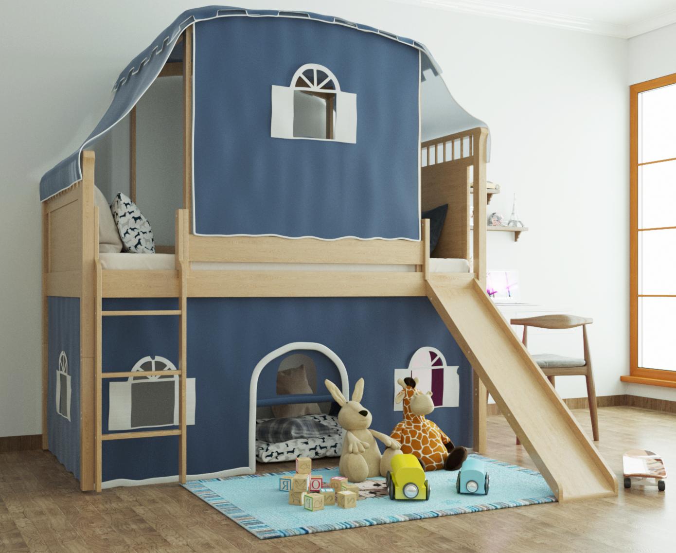 - السرير العلوي المنخفض القابل للسحب مع صناديق التخزين مناسب لمن يخافون من المرتفعات.