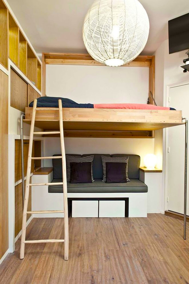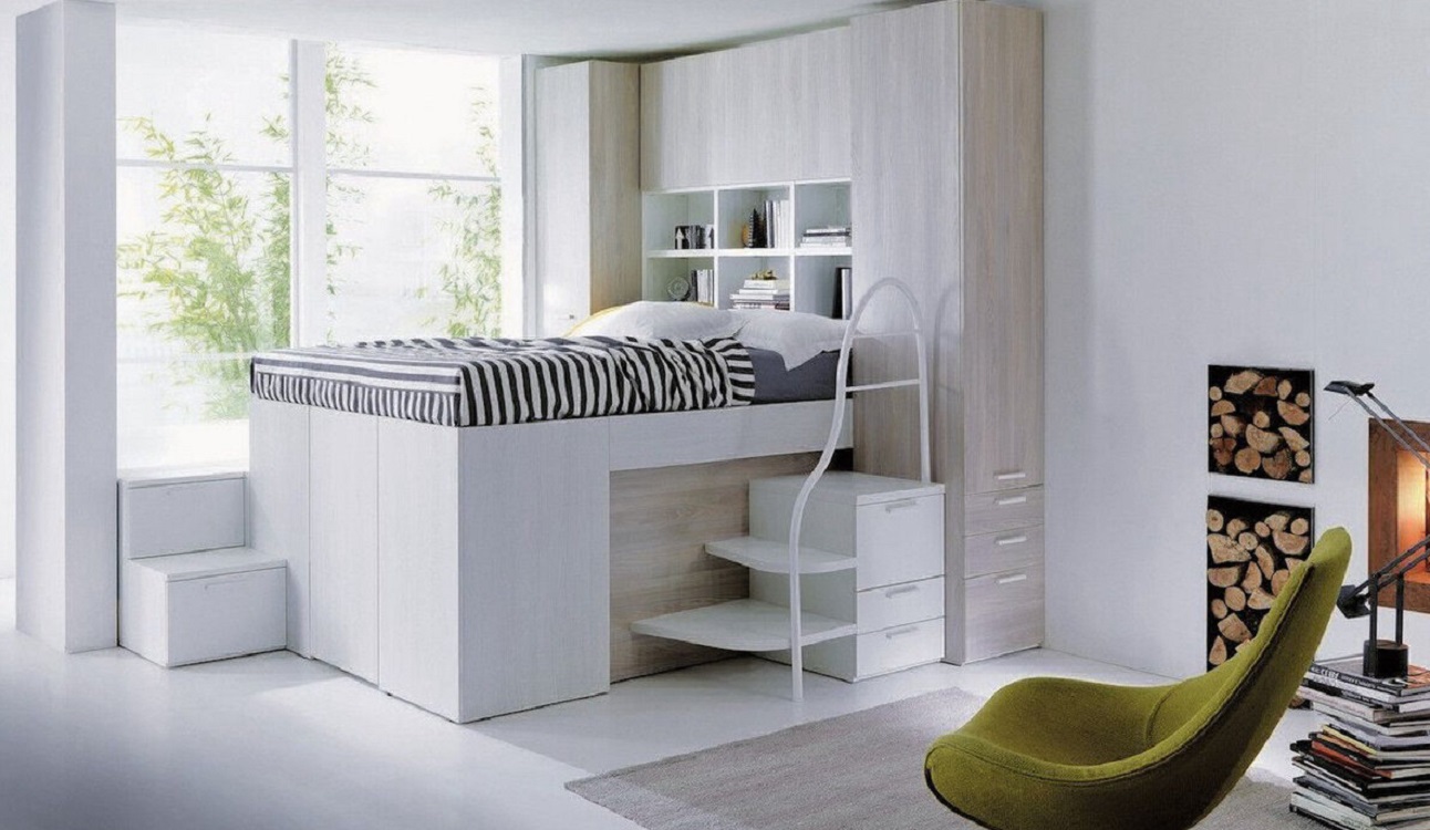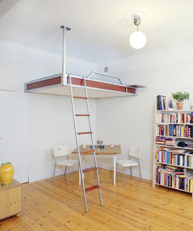 المكان المثالي للسرير العلوي هو مكان مناسب ، ولكن ليس كل الشقق بها واحد. تعتبر المجمعات الكبيرة التي تحتوي على غرفة تبديل ملابس وأنظمة تخزين معيارية ورصيف إضافي مناسبة في مكان مناسب.