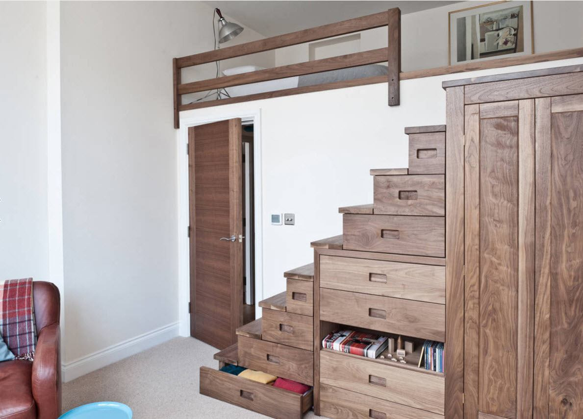 إنها تشغل مساحة كبيرة ، ولكنها تعد أكثر النسب والصعود أمانًا للأطفال والكبار ، كما أن مساحة التخزين داخل الدرجات تعد إضافة كبيرة.
