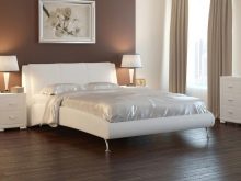 سرير جذاب ، السمة الرئيسية له هي الراحة. تم تصميم التصميم بطريقة تجعل المنتج أكثر نعومة وعملية للبشر.... يكمل الجلد البيئي المظهر ، مما يجعله عصريًا وأنيقًا. يتيح لك اللوح الأمامي المبطّن مع دعامة مغزولة الاستمتاع بنومك على أكمل وجه. المواد الرئيسية للتصنيع هي اللوح و MDF. لا تتضمن المجموعة الأولية الكاملة وجود القاعدة ، ولهذا يمكن للمشتري اختيارها بمفرده.