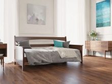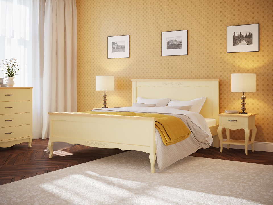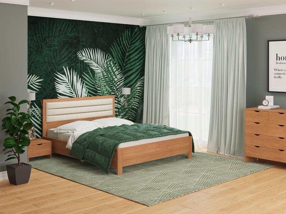 نموذج جمالي مزدوج ، له ثلاثة ألوان تنفيذ: الجوز والينجي والبني الأحمر... مادة الخشب الصلب هي الصنوبر. بفضل العلاج بالورنيش الواقي ، يصبح المظهر أكثر إشراقًا وأكثر تشبعًا. اللوح الأمامي الحديث المريح مصنوع على الطراز الكلاسيكي بنقوش جميلة. القاعدة ، ذات الشرائح المرنة ، تعزز التأثير التشريحي للمرتبة ، مما يجعل الهيكل العام أكثر راحة. الخشب الطبيعي ، المعالج بمواد خاصة ، لديه خشونة في العقد ، مما يكمل السطح الأملس للمنتج.