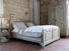يعتبر السرير في غرفة النوم ، المصمم بأسلوب بروفنسال ، عنصرًا مهمًا في التكوين.... يعتمد اختيار العناصر والملحقات الأخرى على شكلها وحجمها والمواد المستخدمة وكذلك لون المنتج ووجود العناصر الزخرفية. في الإصدار الكلاسيكي ، يحتوي هذا النموذج على أجزاء منحوتة أو عناصر منحنية.