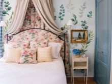 يسود التصميم الداخلي ، المصنوع على طراز بروفانس ، الخفة والسهولة المعينة ، جنبًا إلى جنب مع ظل خفيف من العصور القديمة. السرير هو قطعة الأثاث الرئيسية في غرفة النوم. غالبًا ما يكون منتجًا صلبًا ضخمًا مصنوعًا من مواد طبيعية.