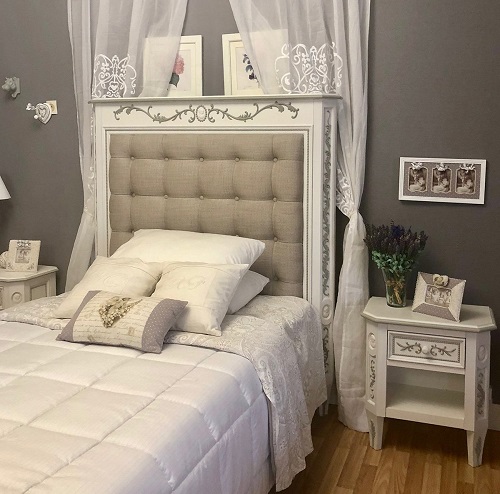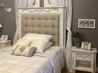 - من بين الأنماط الأخرى ، يمكن تسمية بروفنسال بأنها الأكثر رومانسية. هذا هو السبب في أن اختيار سرير بلوح رأسي جميل سيكون الحل الأمثل للأشخاص المتمرسين.