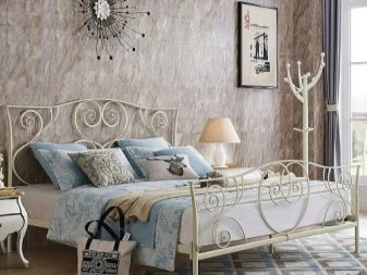 - ستتيح التفاصيل المزورة تزيين مكان النوم بشكل مفيد. تجعيد الشعر المعدني المخرم المطلي باللون الأبيض أو الأزرق الفاتح أو الظلال الداكنة سيحول الأثاث العادي إلى مكان لطيف ومريح للاسترخاء.
