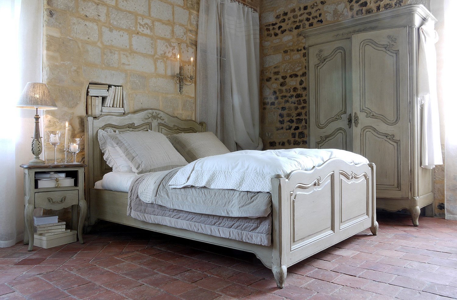 يمكن صنع سرير على طراز الريف الفرنسي من مواد مختلفة. غالبًا ما تكون هذه المنتجات مصنوعة من الخشب أو المعدن.