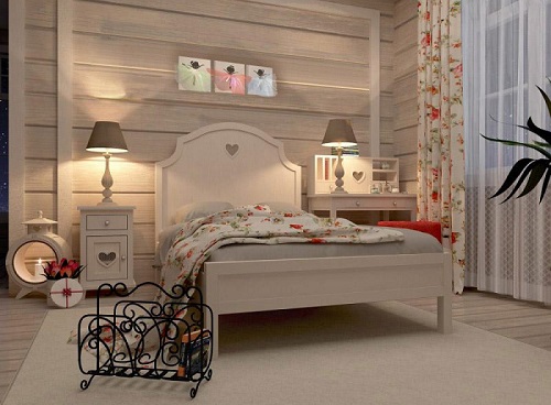 - يبدو السرير الخشبي عضويًا جدًا في مثل هذه الغرفة. غالبًا ما يستخدم الخشب الصلب في إنتاج منتجات عالية الجودة. تُستخدم أنواع معينة من الخشب في صناعة الأثاث ، مثل البلوط والبتولا والرماد والصنوبر. غالبًا ما تترك المنتجات الخشبية في شكلها الطبيعي بسبب جمال النمط الطبيعي. بالنسبة لأسلوب بروفنسال ، غالبًا ما يتم طلاء الأثاث الخشبي بظلال فاتحة وبيضاء.