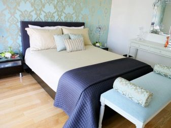 - نسيج. السلس يناسب غرفة النوم أكثر من الحجم الضخم. كلما كانت مساحة المساحة أصغر ، يجب أن تكون الخلفية أكثر حيادية.