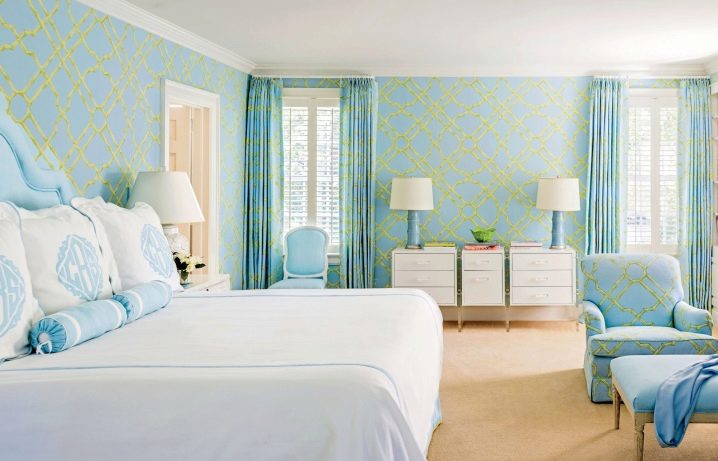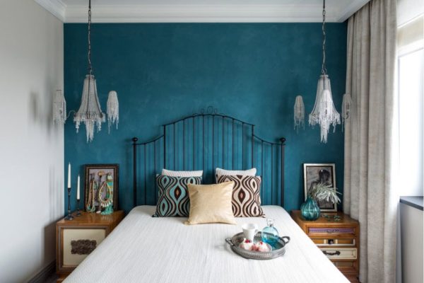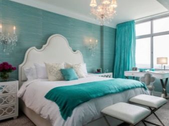 خلفية الفيروز هي حل خلفية جيد للداخلية في غرفة النوم. تبدو متناغمة مع أسلوب البحر الأبيض المتوسط المشرق والإطار الكلاسيكي. أكثر الأمثلة نجاحًا تستحق اهتمامًا خاصًا.
