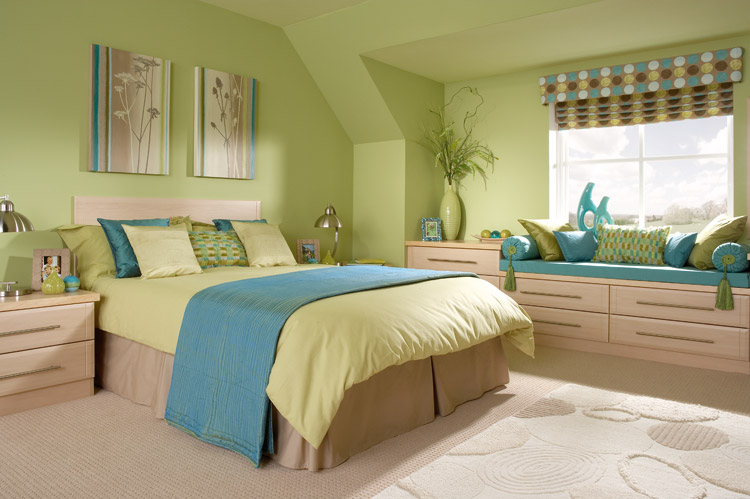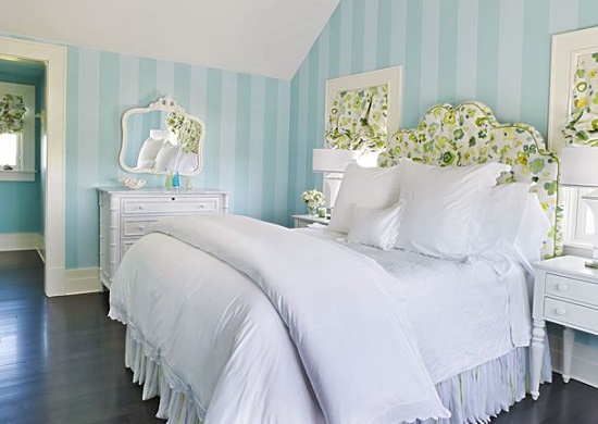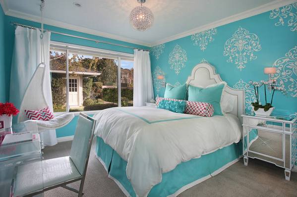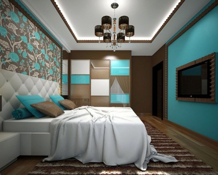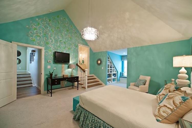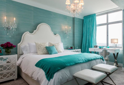 - فيروزي فاتح. تعتبر النغمات الرقيقة والخفيفة رائعة لإضافة الرحابة البصرية إلى غرفة النوم. تمتزج جيدًا مع ألوان الباستيل أو الألوان النابضة بالحياة.