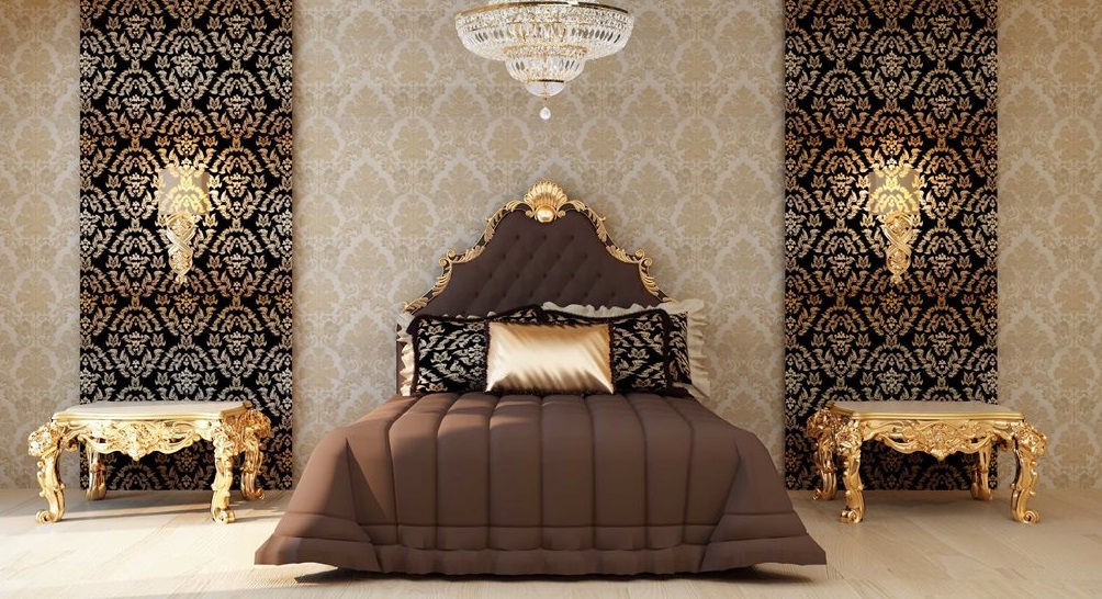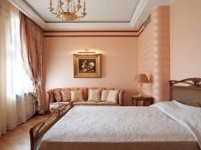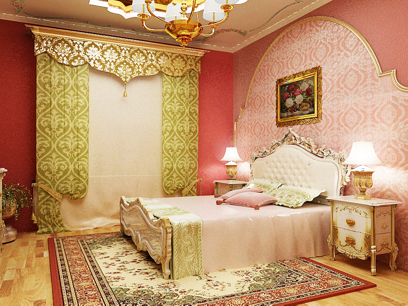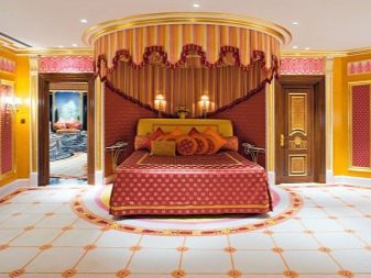 - شرقية. سيتطلب هذا النمط أغلى المواد: طباعة حريرية ، وألياف طبيعية ذات طباعة ساطعة - قرمزي ، برتقالي ، بورجوندي ، أزرق ، ذهبي. إذا تم العثور على ظلال الباستيل ، فحينئذٍ فقط في بقع صغيرة. اختاروا اللوحات ذات الألوان الداكنة بأنماط خيالية. ليس من المعتاد استخدام ورق الصور الفوتوغرافية في النمط الشرقي ؛ نسيج النسيج هو الأكثر تفضيلاً.