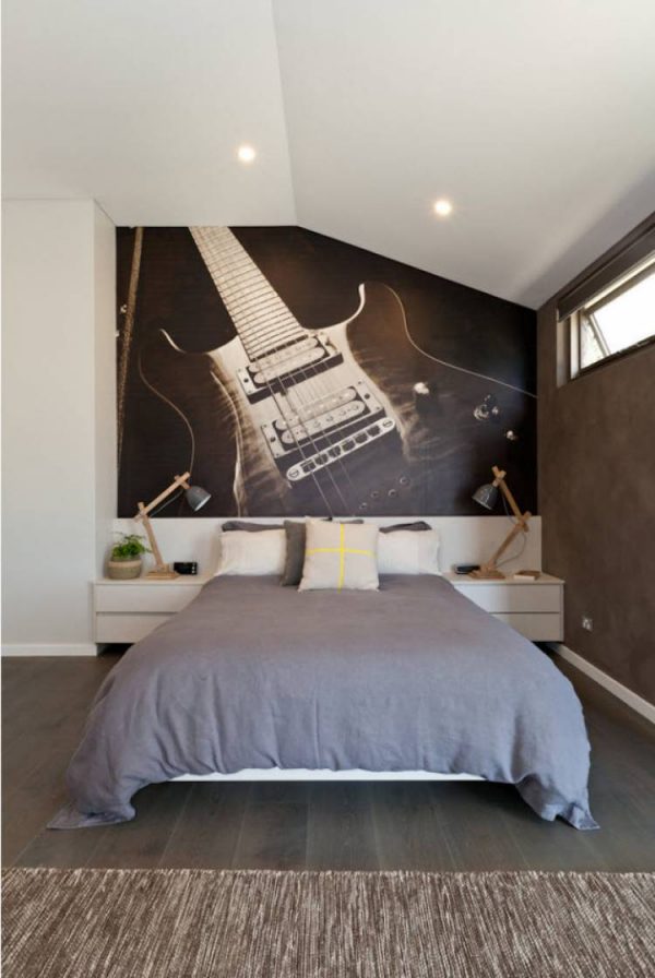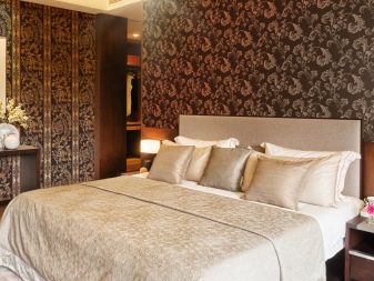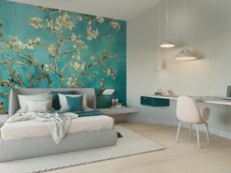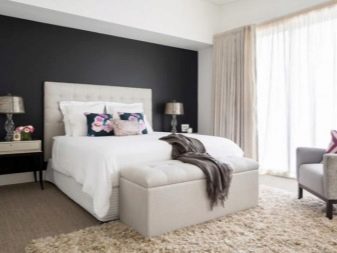 - اشتداد. ستساعد أفكار لصق الجدران بورق الجدران الساطع على خلفية الأسطح أحادية اللون ، ويفضل أن تكون الظلال الداكنة ، في جعلها تسليط الضوء ، بلكنة من داخل غرفة النوم. تجذب هذه التقنية الانتباه ، وتسلط الضوء على الأشياء المجاورة للمنطقة المعلمة ، بينما تساهم الخلفيات الداكنة في تشتيت تركيز النظرة ، وبالتالي خلق شعور بالراحة والعزلة.