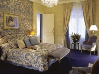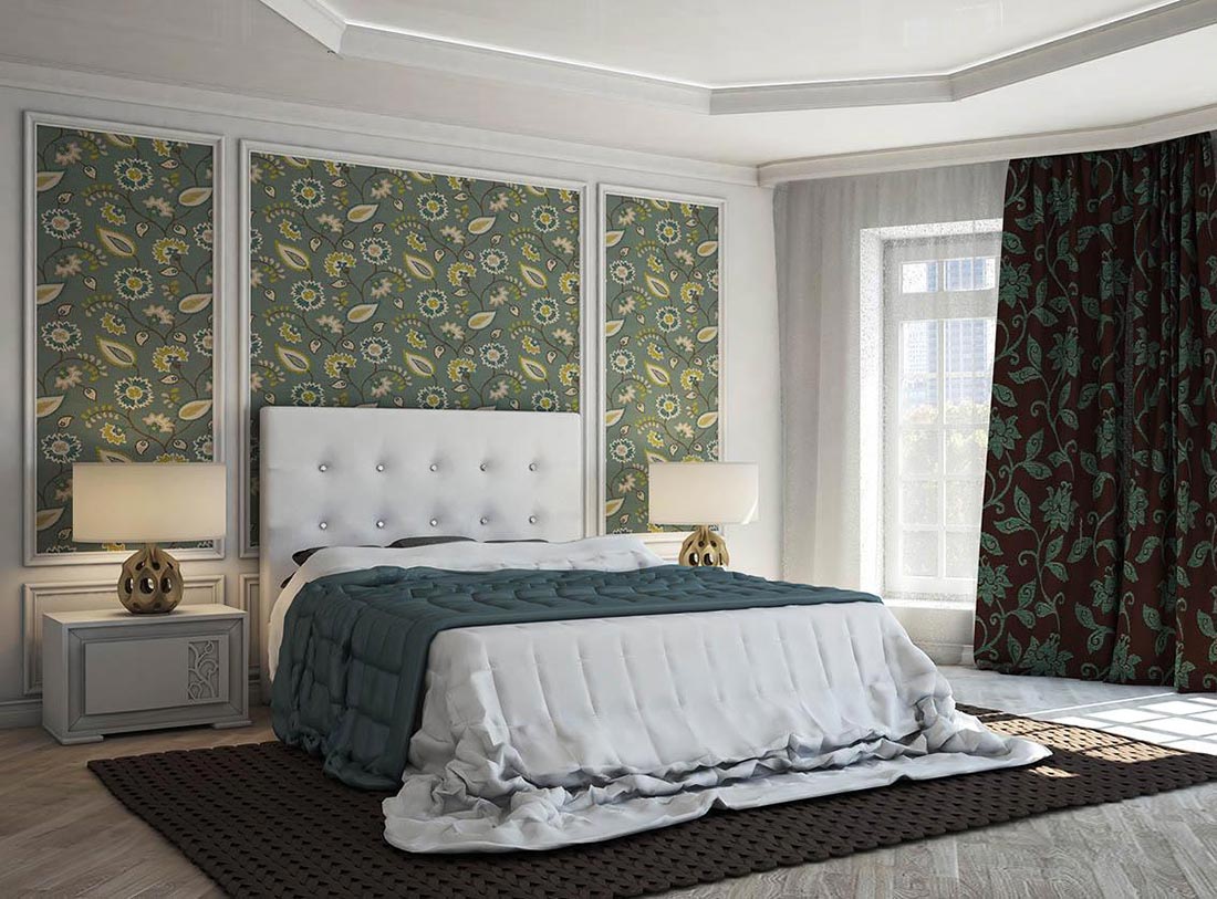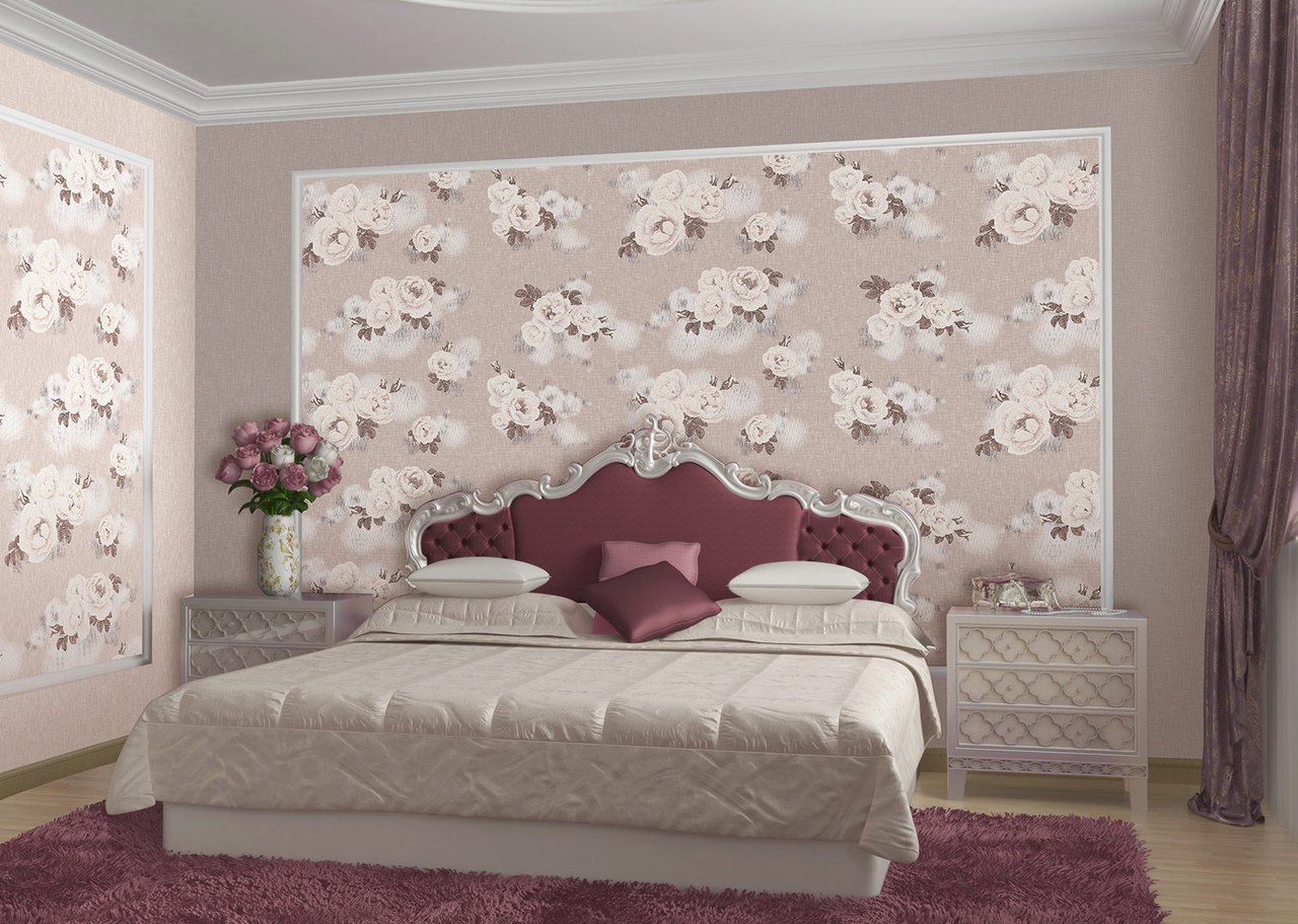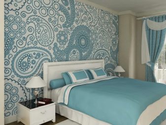 عند اختيار قماش لغرفة النوم ، من الضروري طلب لف لفة من أجل رؤية منظور الرسم. والأفضل من ذلك ، ضع الخيارات المحددة بجانب بعضها البعض لتقييم التوافق. يجب عليك شراء ورق الحائط من نفس المجموعة بشهادة جودة إلزامية.