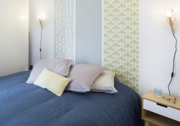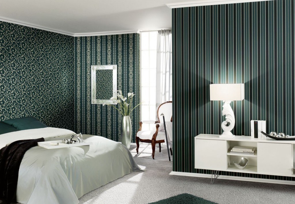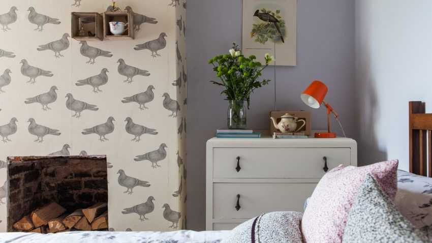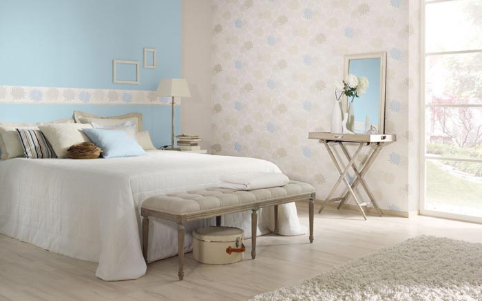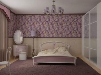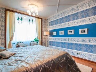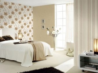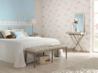اخفاء العيب. تركيبة ورق الحائط هي الحل الأمثل للغرف ذات الجدران غير المستوية. تكوين ثنائي وثلاثة ألوان يحل هذه المشكلة. ستعمل اللوحة بألوان الباستيل على تنعيم السطح بصريًا ، بالإضافة إلى الرسم الصغير ، والملمس المنقوش ، بينما تتناسب جميعها بشكل متناغم مع داخل غرفة النوم. لكن حتى الخطوط الطويلة أو المربعات الكبيرة ، على العكس من ذلك ، ستسلط الضوء على العيوب. لا تستخدم الألوان الداكنة والعميقة لإخفاء العيوب ، لأنها تميل إلى التأكيد عليها بدلاً من تقليلها. يتم إخفاء المفاصل غير المستوية بسهولة باستخدام الحدود أو الرغيف الفرنسي ، علاوة على ذلك ، فهي تساهم في الانتقال العضوي للمواد ذات القوام المختلف من جزء إلى آخر.