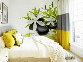 تزيد الصور الجدارية في غرفة صغيرة بصريًا من الأحجام المكانية. يخلق التصميم المختار جيدًا إحساسًا بالمنظور العميق ، مثل منظر من نافذة أو مناظر بحرية أو مناظر طبيعية. يكفي لصقها فوق أحد الجدران ، وإنشاء خلفية هادئة على الجدران الأخرى. الجداريات مع الزهور ، الصور على شكل لوحات محاطة بإطار زخرفي باستخدام العناصر المذكورة أعلاه ، أو يتم وضع طباعة مجمعة أحادية اللون بجانبها. تحتوي غرف النوم على مؤشرات مختلفة للقطات والطول والإضاءة ، ويمكن أن تكون صغيرة أو كبيرة وخفيفة ومظلمة. يجب أن تؤخذ كل هذه المعلمات في الاعتبار عند إنشاء التصميم والرغبة في ضبط الغرفة.