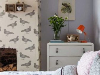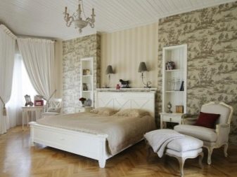 اليوم ، هناك طلب كبير على الخلفيات التي تقلد المواد الطبيعية لأنماط مثل دور علوي ، إسكندنافي ، بساطتها. إذا كانت هناك دائمًا خلفيات معروضة للبيع تقلد أعمال البناء بالطوب ، فهناك الآن لوحات مقلدة للخرسانة. ولكن في غرفة النوم ، يمكن استخدام هذه الخلفيات فقط لأسلوب الدور العلوي.