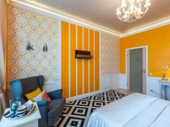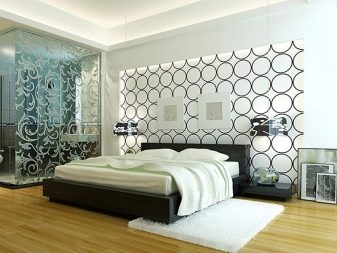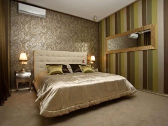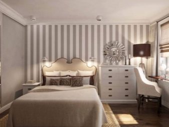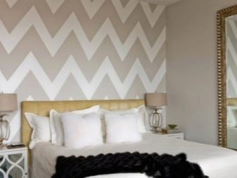 تم دمج ورق الحائط المخطط في الجزء السفلي والجزء العلوي بشكل جيد ، وربما ينتقل إلى مساحة السقف. ستكون النتيجة رائعة في حالة أخرى: سقف مزخرف وجزء علوي من الجدار - وسقف سفلي عادي. ومع ذلك ، فإن الاندماجية خطيرة للغاية ، في هذا من الضروري أن تسترشد بإحساس بالتناسب. ليس من الضروري تزيين غرفة النوم بأكملها بتأثير اندماجي ؛ سيكون من الأصح إعطاء الأفضلية لللهجات ، وترك المساحة الرئيسية هادئة حتى لا تثير نفسية.