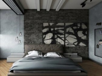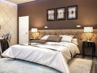 يعتمد التصميم على مبدأ الأفقي. يستخدم المصممون تقسيمًا 3: 2 لمساحة الجدار ، حيث يتم إعطاء 3 أجزاء للوحات الرئيسية ، وجزءان بارزان. يمكنك استخدام مزيج من نسختين أو ثلاث نسخ مطبوعة ، أو اختيار أنماط مختلفة.
