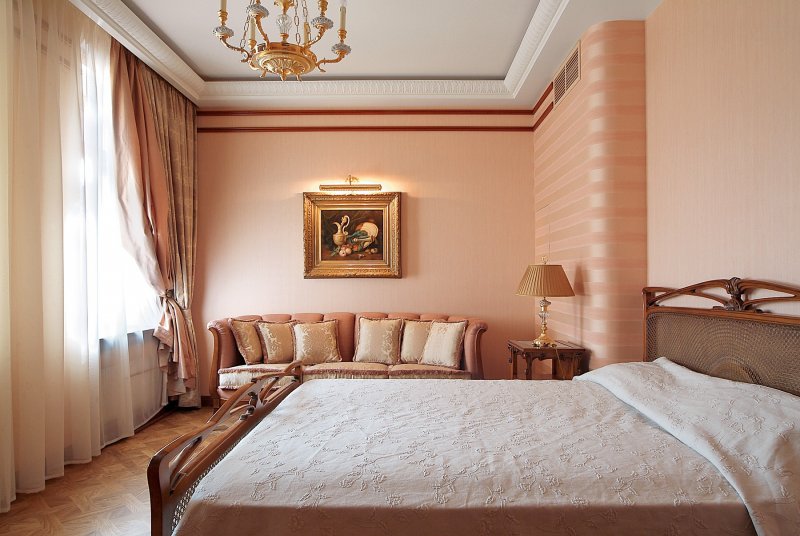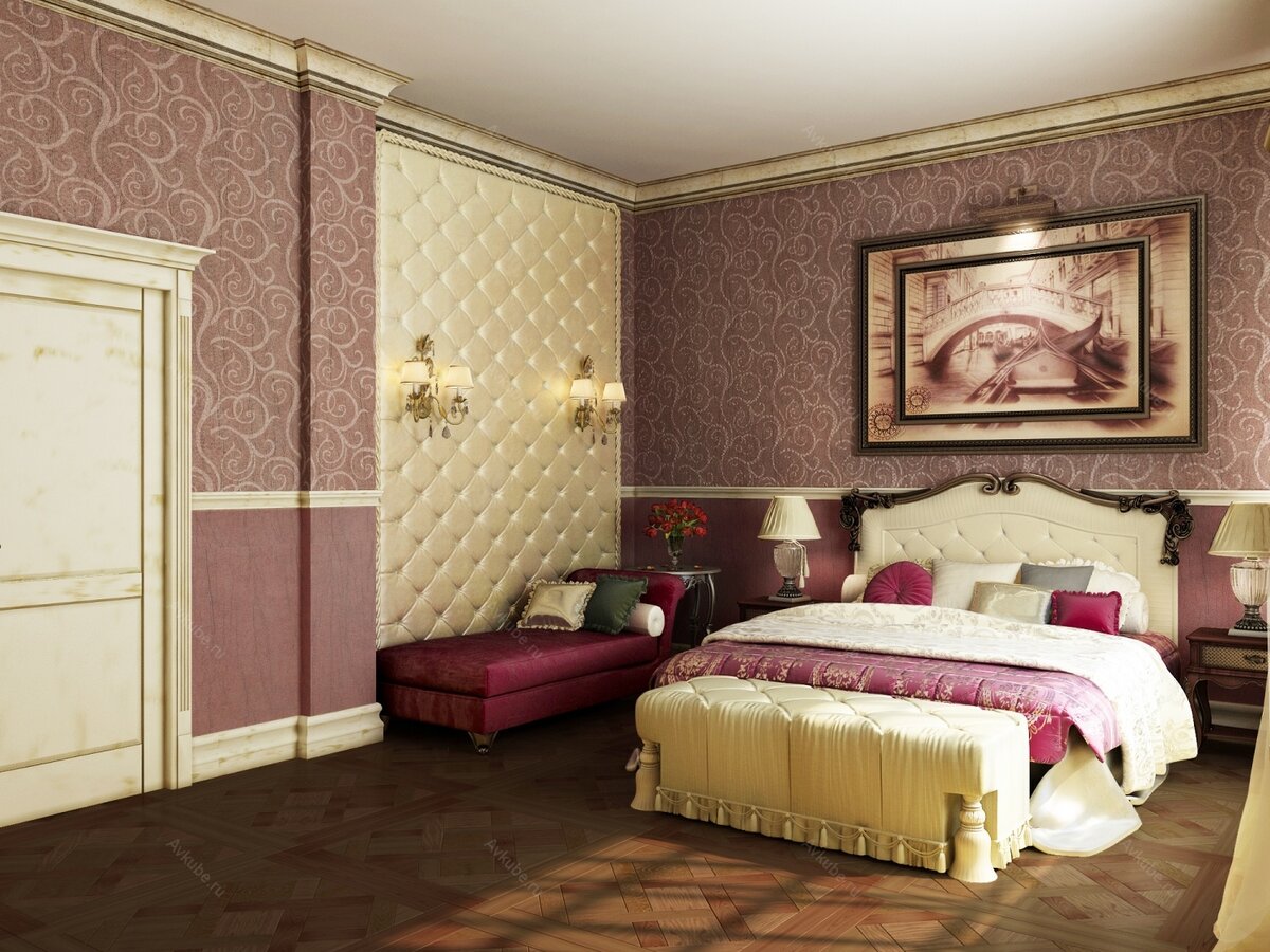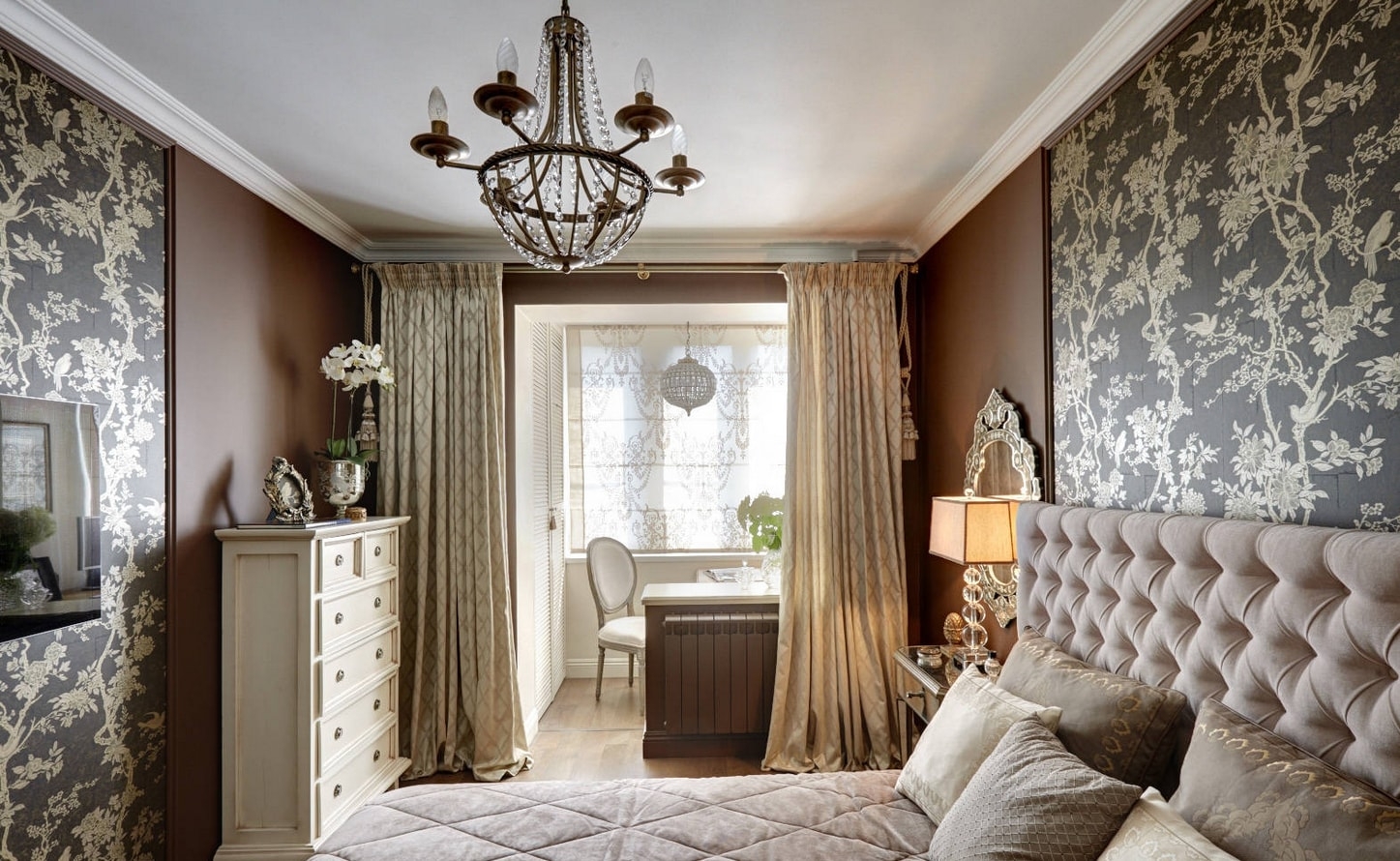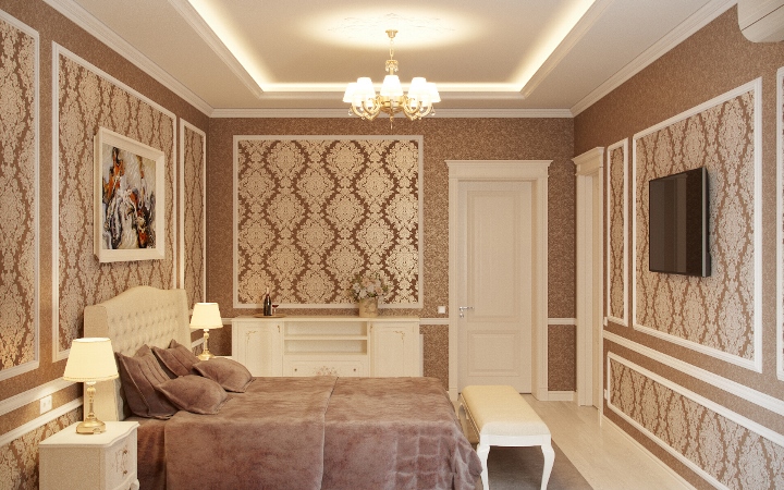 كلاسيك. يفضل مجموعة من التصاميم البسيطة والمعقدة. يجب أن تكون اللكنة أعمق بعدة نغمات من اللون الرئيسي. المبدأ الأفقي للجمع مع استخدام القوالب حول المحيط. تتناوب الهندسة الساطعة مع الطباعة الخفيفة.