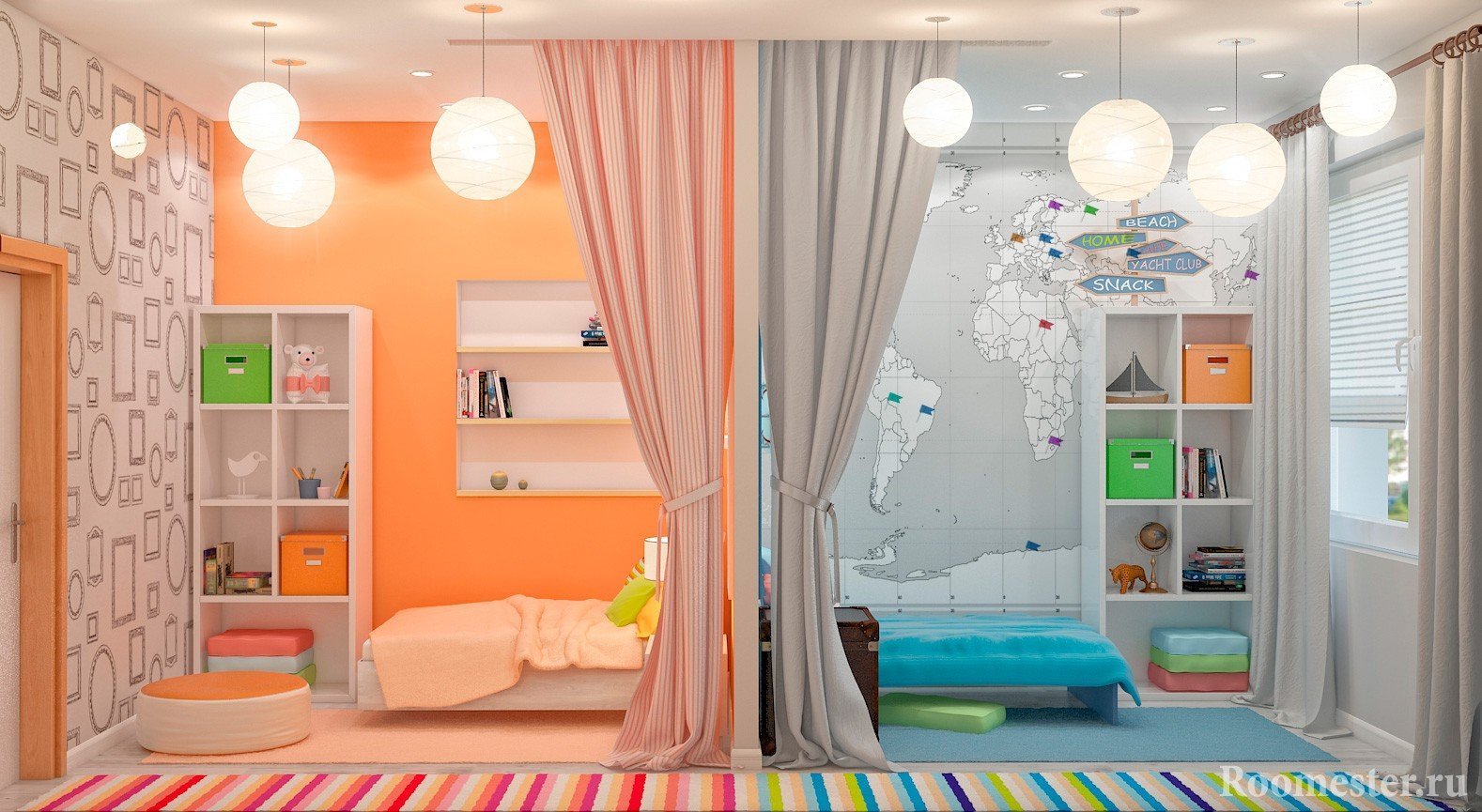- تقسيم المساحة. سوف تساعد تركيبات ورق الحائط على تزيين غرفة المعيشة والدراسة وغرف الأطفال وغرف النوم بكفاءة وجمال. بالإضافة إلى التأثير الجمالي ، فإنهم يحددون المساحة بشكل مثالي.في المكتب ، بمساعدتهم ، يمكنك التأكيد على منطقة الترفيه ومكان العمل ، في غرفة المعيشة في المطبخ ، وفصل منطقة تناول الطعام عن الأثاث المنجد والمسرح المنزلي. يوجد في غرفة النوم مكان للنوم من غرفة تبديل الملابس والمرحاض. في الحضانة - مكان الأخت من فضاء الأخ. على سبيل المثال ، ضع سرير الصبي على خلفية قماش رمادي فاتح ، وزين الجدار بالقرب من سرير الفتاة بدرجات اللون الوردي.