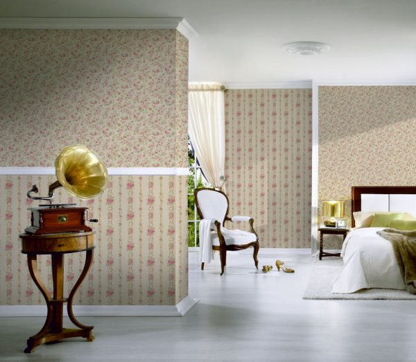 - بروفانس. ألوانها عبارة عن لوحة بحرية وتتخللها لوحة رملية ذات لون بني وردي في طبعة زهرية صغيرة ، بالإضافة إلى شريط ، مزيج خليط ، تقليد الحجر الطبيعي أو الخشب. بالنسبة إلى بروفانس ، تعتبر مادة مطبوعة تسمى "chints" ، مستوحاة من دوافع الأقمشة الهندية ، مناسبة.