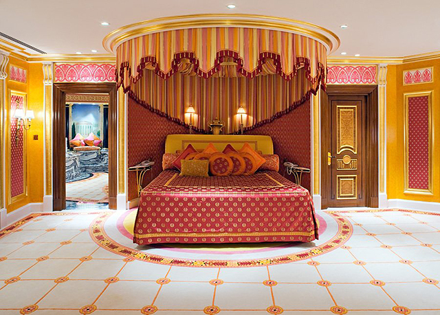 يتم تحقيق تأثير مذهل من خلال نقل الشريط الزخرفي إلى السقف ، مما يخلق وهم صورة معكوسة.