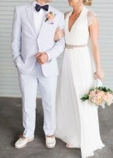 لحفل الزفاف ، يوصى باختيار حذاء بأسلوب كلاسيكي.، من المهم ألا تتناسب فقط مع بدلة العريس ، بل تتماشى أيضًا مع ملابس العروس. من الأفضل تفضيل نموذج بكعب صغير بنعل موثوق.