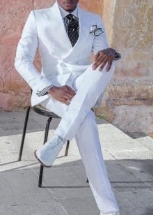 الرجال في الأحذية البيضاء تبدو أنيقة. تتناسب الأحذية الأرستقراطية البيضاء بشكل جيد مع الأشياء المظلمة ، وتشكل تباينًا ، ولكن في نفس الوقت يستحق دعم اللون الأبيض في الملحقات. هذا المزيج ليس مناسبًا دائمًا ، لذلك تحتاج إلى التحكم حتى يكون المظهر متناغمًا.