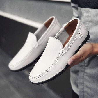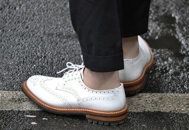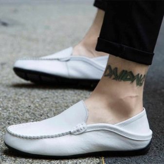 أحذية الرجال البيضاء مثالية لفصل الصيف ، فهي تتنفس النضارة والجدة منها. لا يجرؤ كل ممثل على ارتداء مثل هذه الأحذية ، وعبثا. من السهل أن تبرز من بين الحشود الموجودة فيه ، لجعل الصورة فريدة من نوعها.