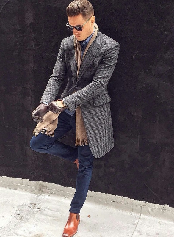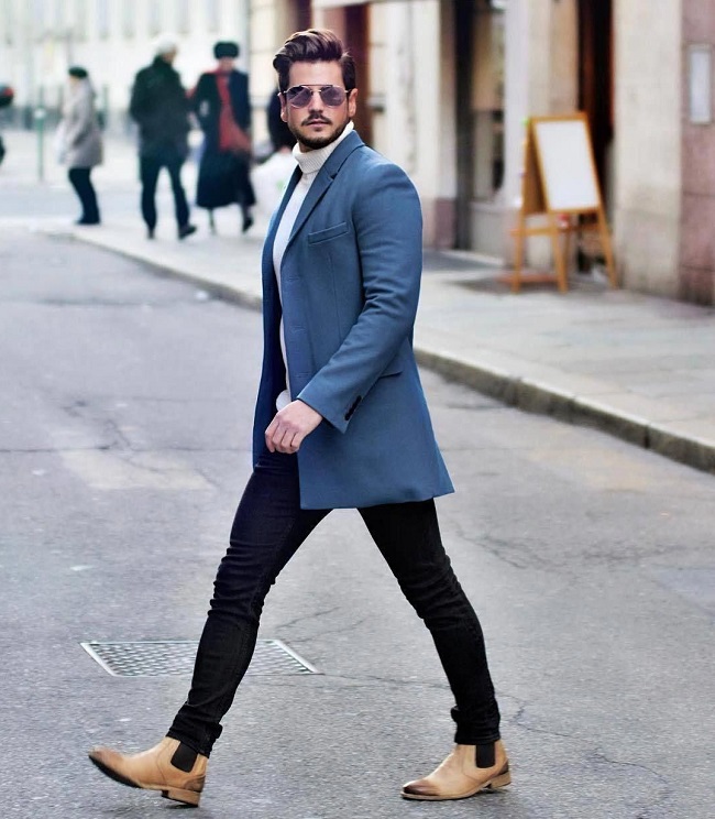 - في الموسم الأكثر برودة ، سيجد تشيلسي أيضًا مكانًا في ملابسك. لذلك ، يمكن أن يتكون القوس الخاص بك من الياقة المدورة الداكنة الدافئة ، ومعطف رمادي فاتح أو معطف قصير ، بالإضافة إلى تشيلسي وبنطال الجينز الضيق الداكن. اعتمادًا على نوع الحدث الذي ستحضره ، يمكنك اختيار جينز به ثقوب أو بدونه. مع كل هذا ، سيبدو تشيلسي الكلاسيكي مع الجوارب السوداء الطويلة متناغمًا. يمكنك تخفيف المظهر بإكسسوارات أنيقة ، على سبيل المثال ، ساعة يد أو وشاح خفيف طويل.