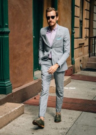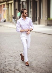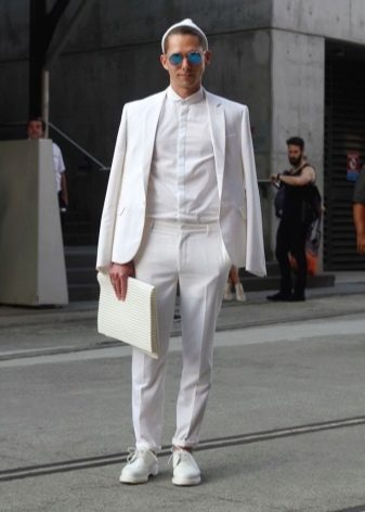 - أبيض. غالبًا ما يتم اختيار الأحذية ذات الألوان الفاتحة للبدلات ذات اللون الرمادي الفاتح. هذه الأحذية تعطي مظهر الأناقة والجدية. غالبًا ما يتم ارتداؤها في حفلات الزفاف والاحتفالات الأخرى.