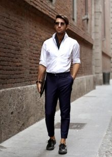 - بالإضافة إلى بدلات العمل ، تبدو هذه الأحذية متناغمة مع البنطلونات. وكذلك الصورة مكملة بقميص أو قميص بدون سترة. خيار رائع للموسم الحار.