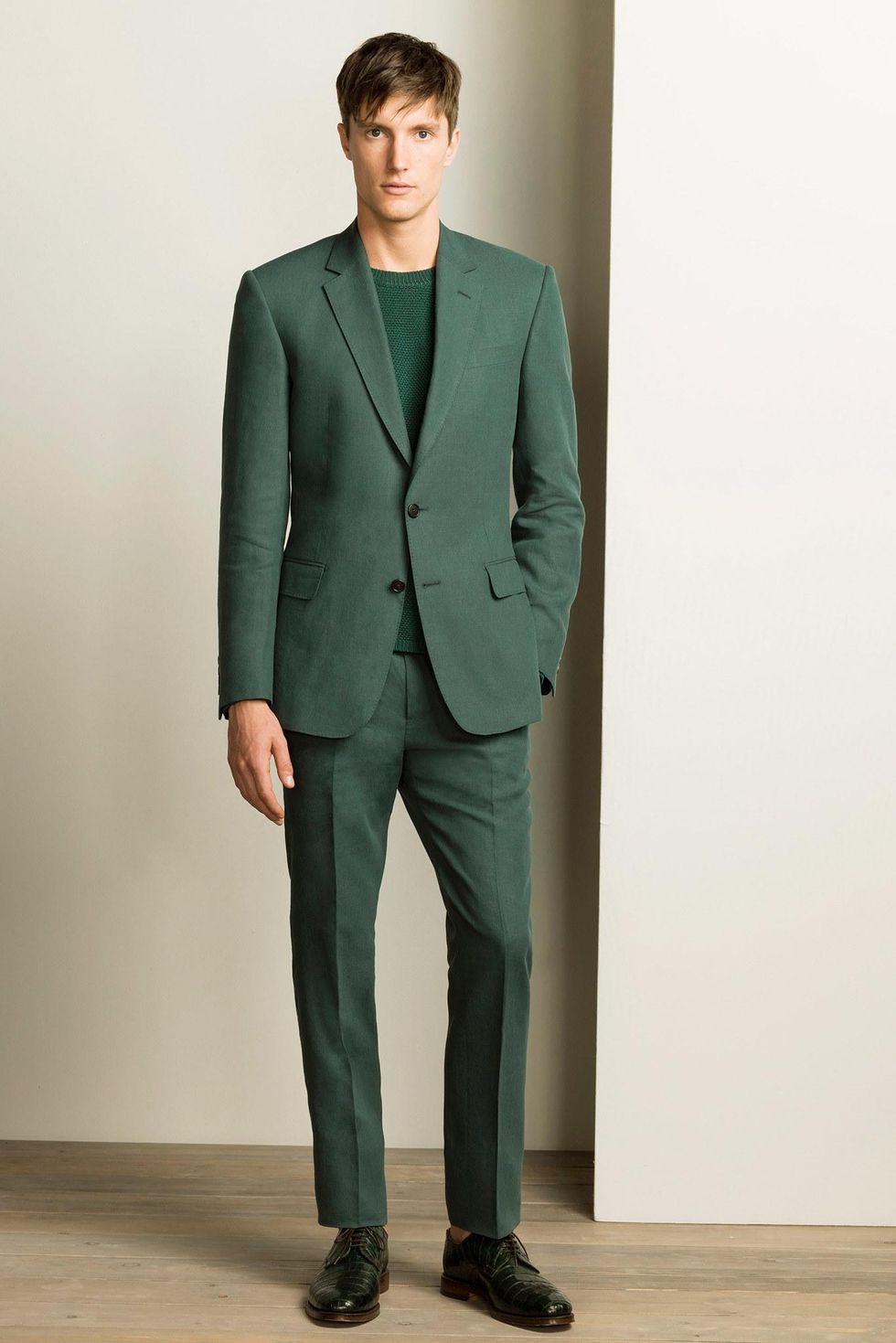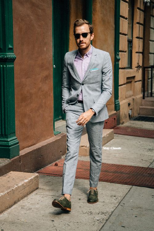 - لون أخضر. تعتبر أحذية المستنقعات أو الأحذية الخضراء الداكنة خيارًا رائعًا لبدلة من نفس اللون. كما أنها ستكمل المظهر بشكل متناغم ببدلة سوداء أو رمادية داكنة أو بنية اللون.