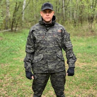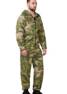 بشكل منفصل ، يجب أن يقال عن الملابس المموهة ذات مستوى مقاومة الماء المتزايد ، وهو مناسب بشكل خاص للصيادين والمقيمين في الأماكن التي يوجد بها مطر غزير.