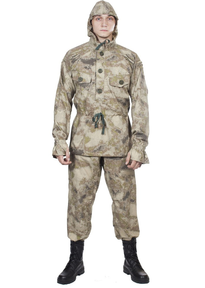 الملابس المموهة المصنوعة من الأقمشة الكثيفة منتشرة على نطاق واسع. يمكنك السفر فيه بأمان حتى في الأيام الباردة. أو في غابة رطبة كثيفة. تعتبر النماذج من النوع "Hill" عالمية. أثبتت هذه السلسلة نفسها بشكل جيد في الغابات والمناطق الصخرية. تم تجهيز هذه البدلات بإدخالات تقوية في أكثر الأماكن إشكالية.