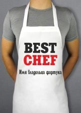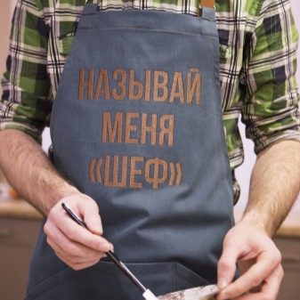 يتم تقسيم المرايل أيضًا وفقًا للغرض منها طهاة تقليديون و نماذج الشواء... يجب أن يكون الأخير مجهزًا على النحو الأمثل بجيوب وأن يكون مصنوعًا من قماش أكثر كثافة. عند اختيار مئزر للرجل كهدية ، يجب أن تأخذ في الاعتبار خصائصه وذوقه وهواياته ومكانته وسببه. لا تعطي زملائك أو رؤسائك مآزر بنقوش أو صور مشكوك فيها.