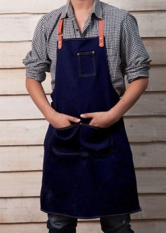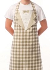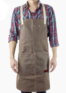 - المريلة- أبسط تنوع ، بعبارة أخرى ، هو قطعة قماش بحزام ، مريحة ، لكنها ليست الأكثر عملية ، لأن الصدر يظل غير محمي ؛
