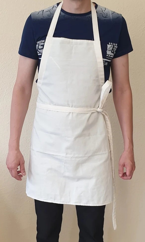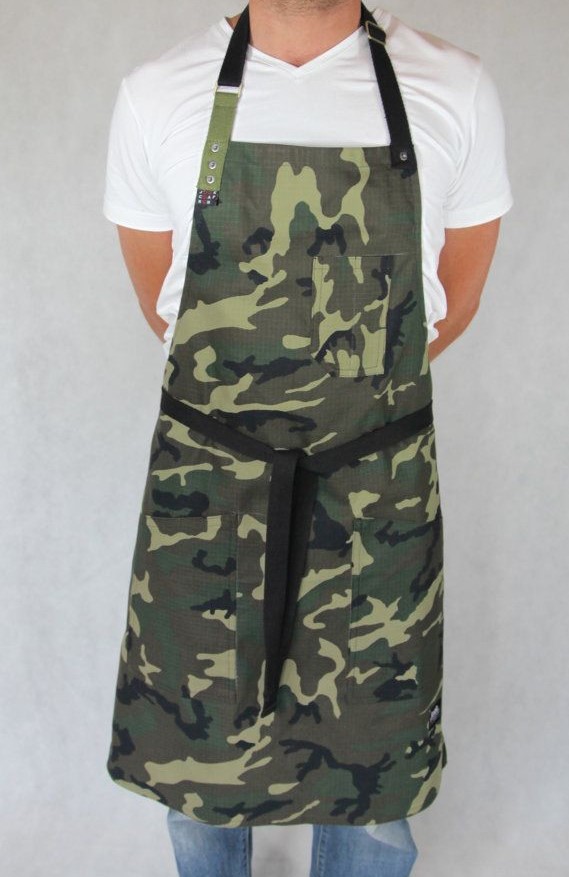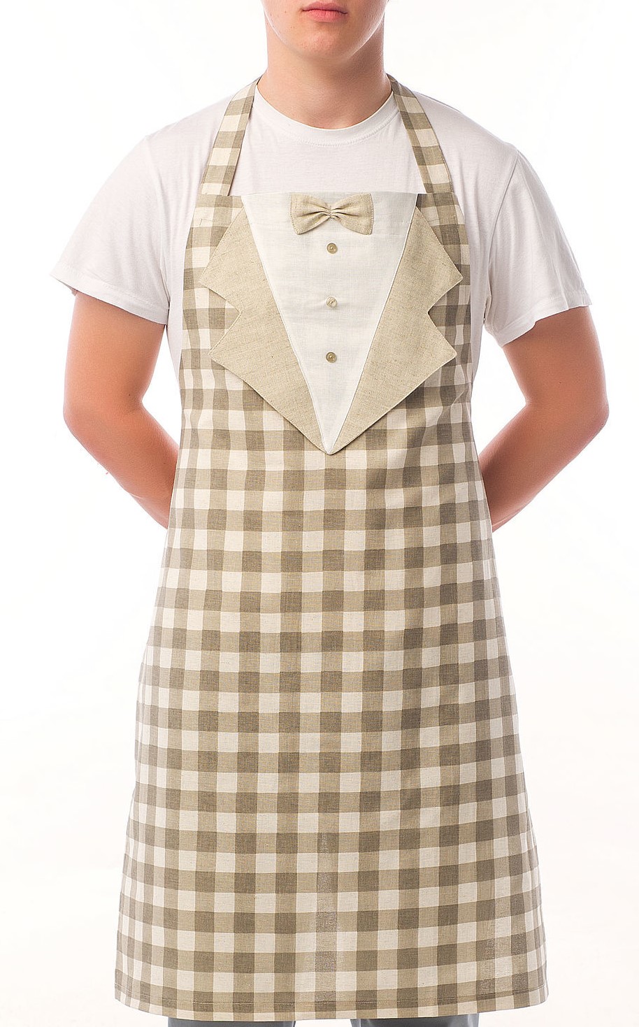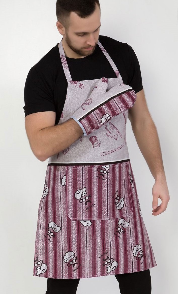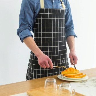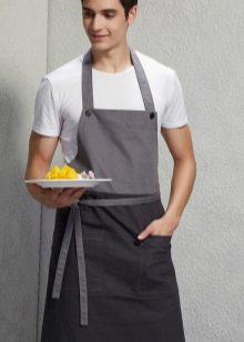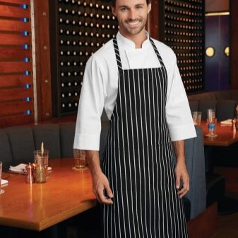 تصنع مآزر الطبخ من نفس الأقمشة الخاصة بالنساء. من المهم أن يكون العنصر عمليًا ومناسبًا لطاهٍ من أي مستوى مهارة.