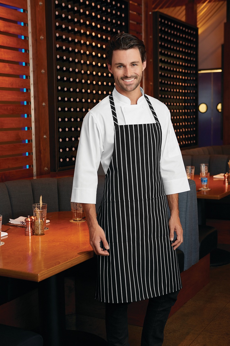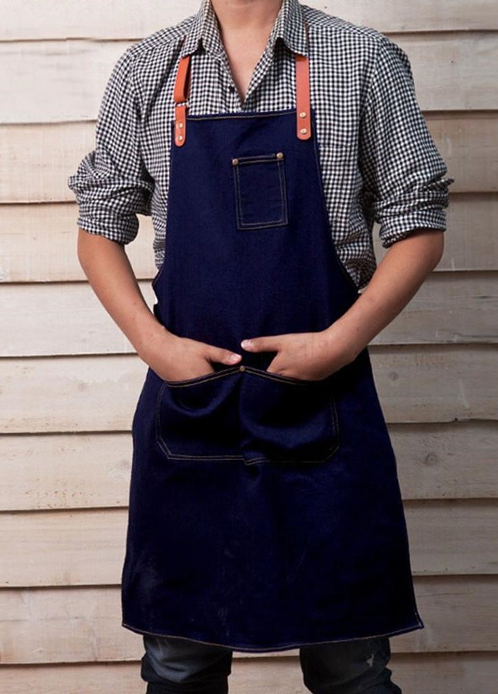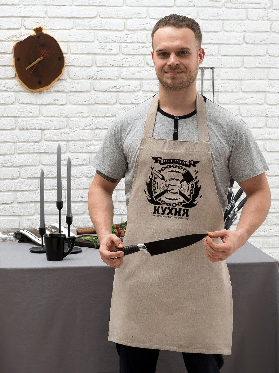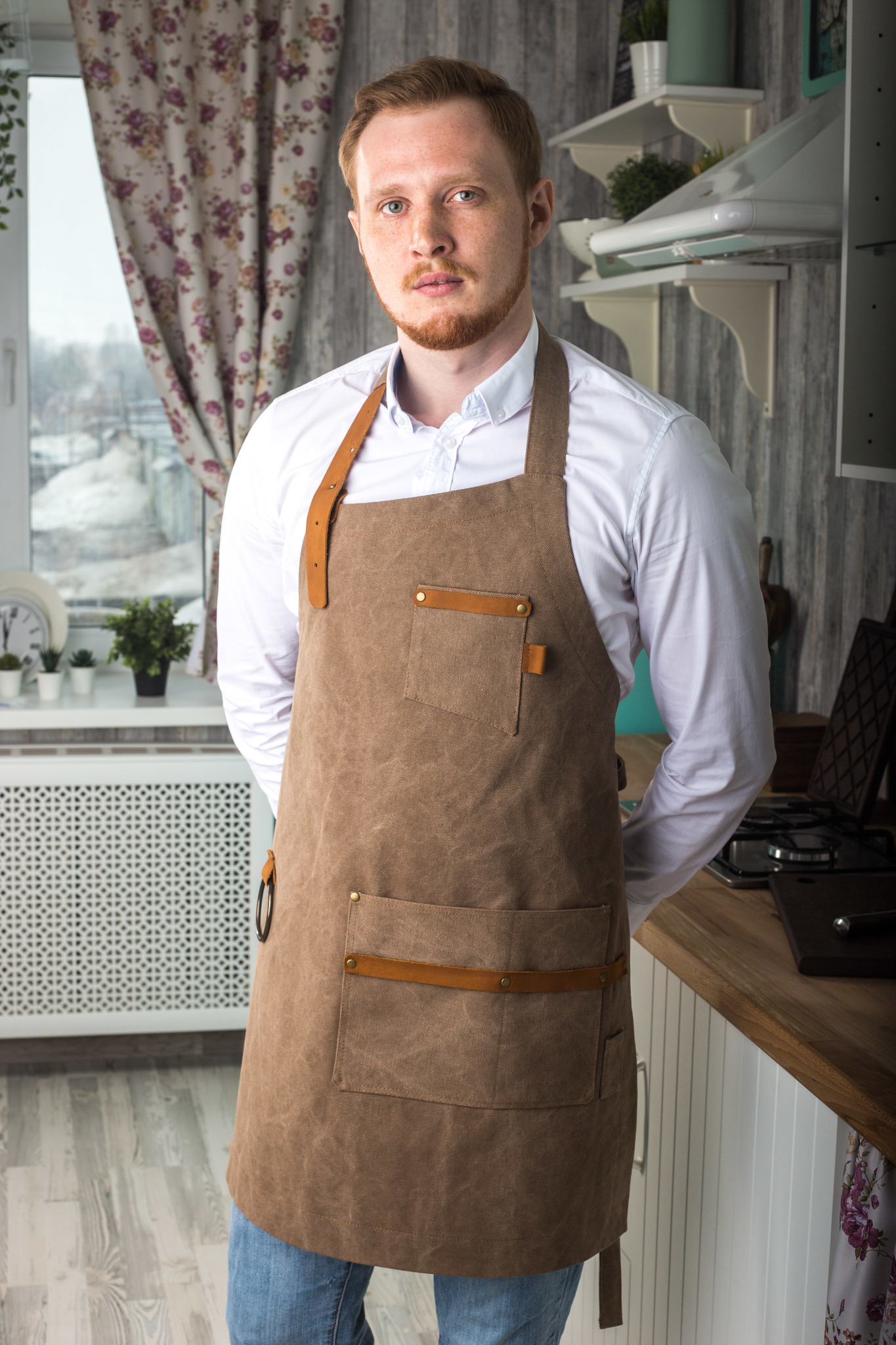 تصنع مآزر الطبخ من نفس الأقمشة الخاصة بالنساء. من المهم أن يكون العنصر عمليًا ومناسبًا لطاهٍ من أي مستوى مهارة.