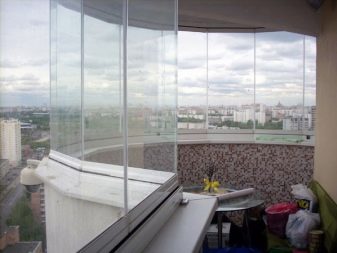 العيوب هي عدم وجود حماية ضد المتسللين. بالإضافة إلى ذلك ، هذا نوع من الزجاج البارد ، لذلك سيكون من الممكن استخدام هذه الشرفة الجميلة بالكامل فقط في الموسم الدافئ.