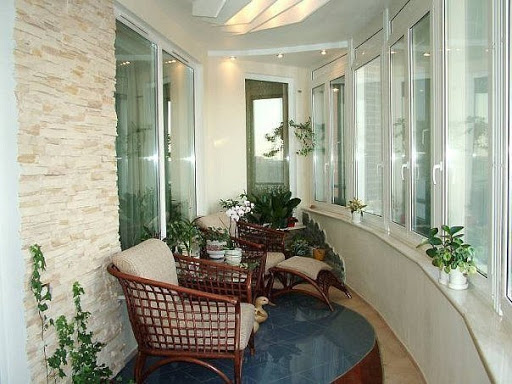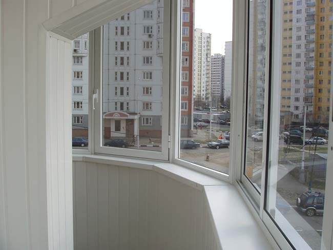 بالنسبة للديكور الداخلي ، يوصى باستخدام مواد ناعمة ومرنة ، لأن الشكل نصف الدائري غير المعتاد يجعل من الصعب العمل مع بلاط السيراميك أو اللوح أو الحجر. إذا كنت ترغب في غلق الشرفة من الداخل بيديك ، فقم بإلقاء نظرة على الألواح البلاستيكية. يسهل العناية بها ، حيث يتحمل البلاستيك التنظيف الرطب ولا يتلاشى تقريبًا بمرور الوقت. تنوع الألوان مذهل ، يمكنك إنشاء أي تصميم داخلي حرفيًا. تقدم بعض الشركات حتى إمكانية طباعة الصور على البلاستيك.
