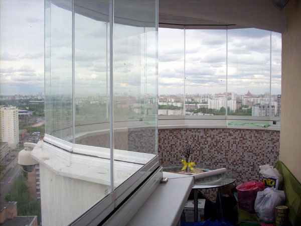 - زجاج نصف قطر - لجماليات حقيقية. بناءً على طلب فردي ، سنقوم بعمل وحدات زجاجية منحنية لك ، والتي تتناسب بشكل مثالي مع الفتحة. هذه الطريقة مناسبة حتى لشرفات المصمم المتموجة. هذا الزجاج غير مرئي عمليا من الجانب. العيب الأكثر أهمية هو السعر المرتفع.