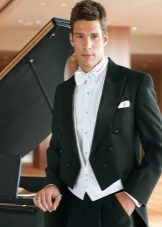 يجب اقتناء سترة مزدوجة الصدر لإطلالة الرجل. على عكس السترة ، يتم ارتداؤها بأزرار. في معظم الحالات ، يتم اختيار نموذج أبيض. الأحداث الفردية تسمح بخيارات ملونة.
