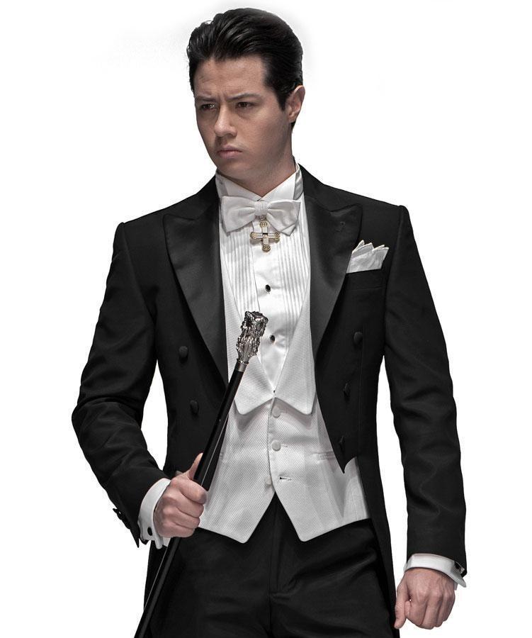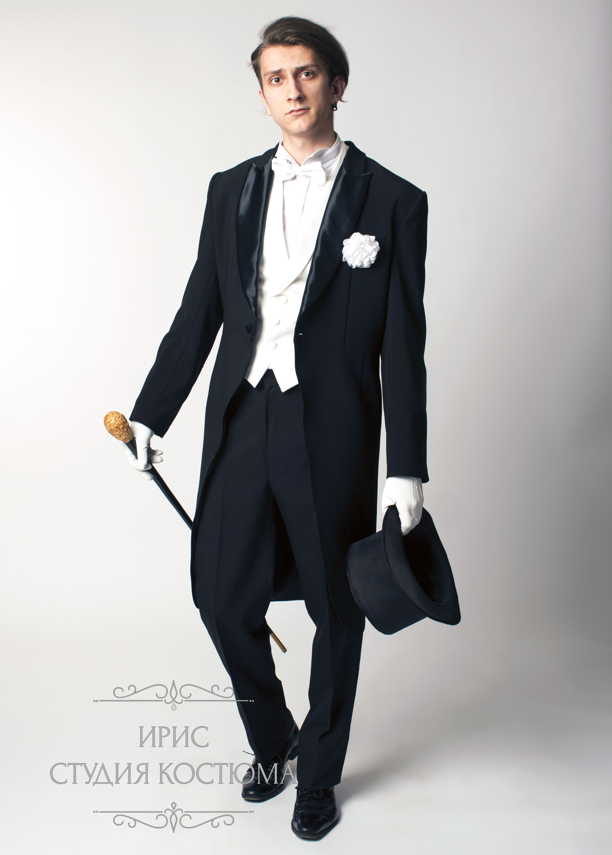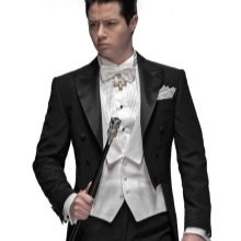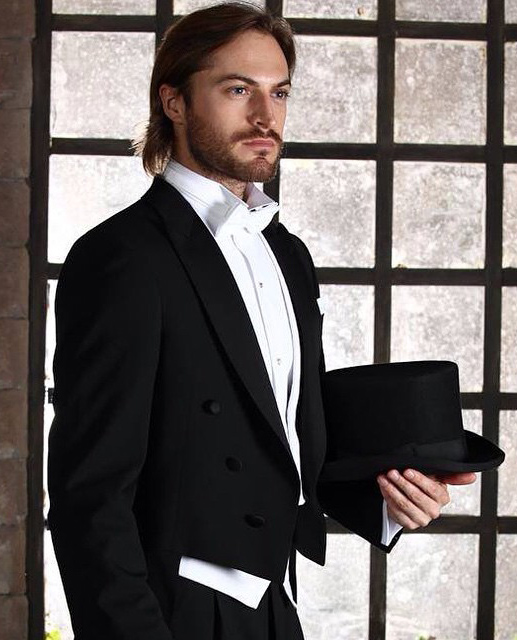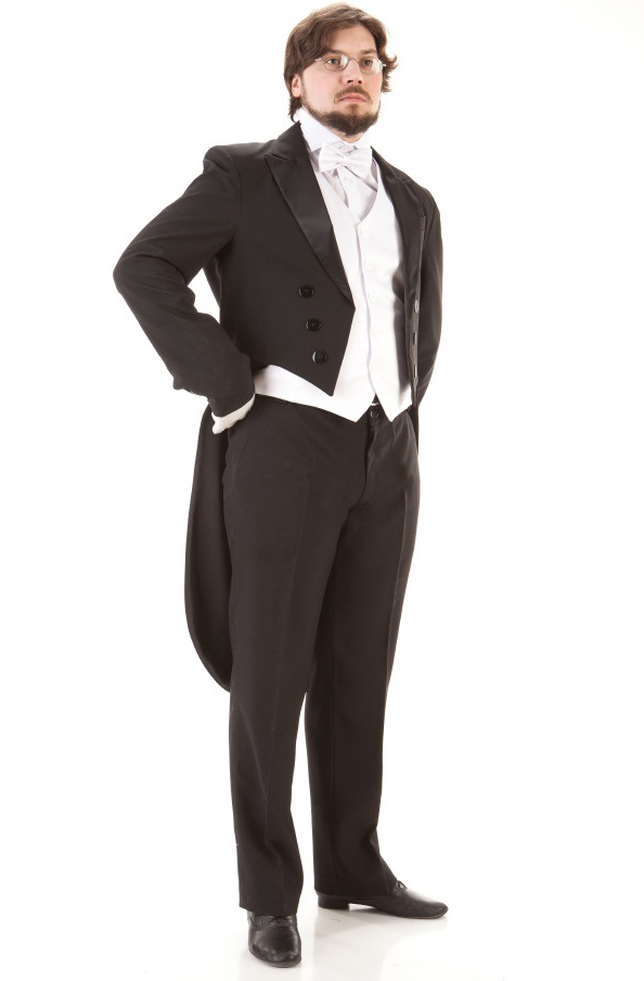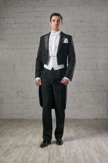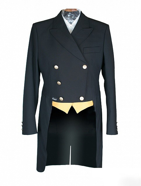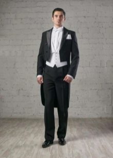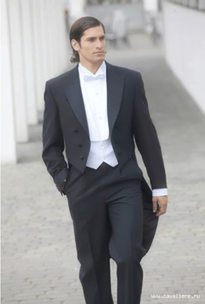 - "رب". معطف ذيل صارم يتناسب بشكل جيد مع قميص وسترة ناصعة البياض. شبكة الأبعاد - 44-60. التكوين - ليكرا والصوف.