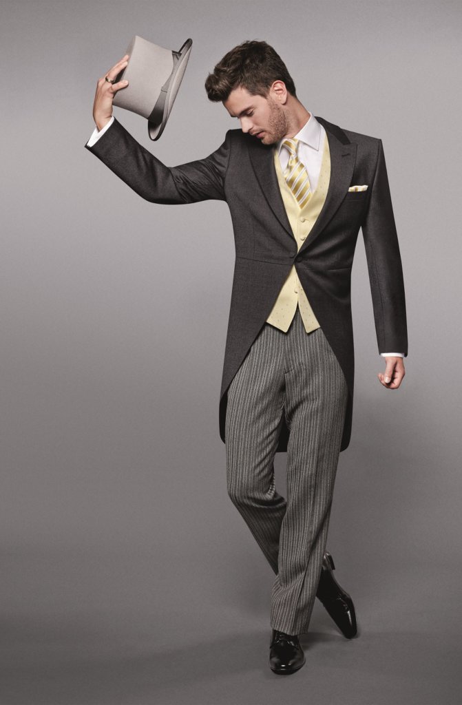 هذا هو المظهر المثالي لحفل زفاف أو مناسبة أخرى في الهواء الطلق. أيضًا ، سيكون الزي مناسبًا عند صيد الثعالب. عندما يتم وضع معطف خلفي للاحتفال في الهواء الطلق ، يضاف إليه غطاء رأس - أسطوانة.