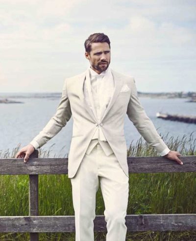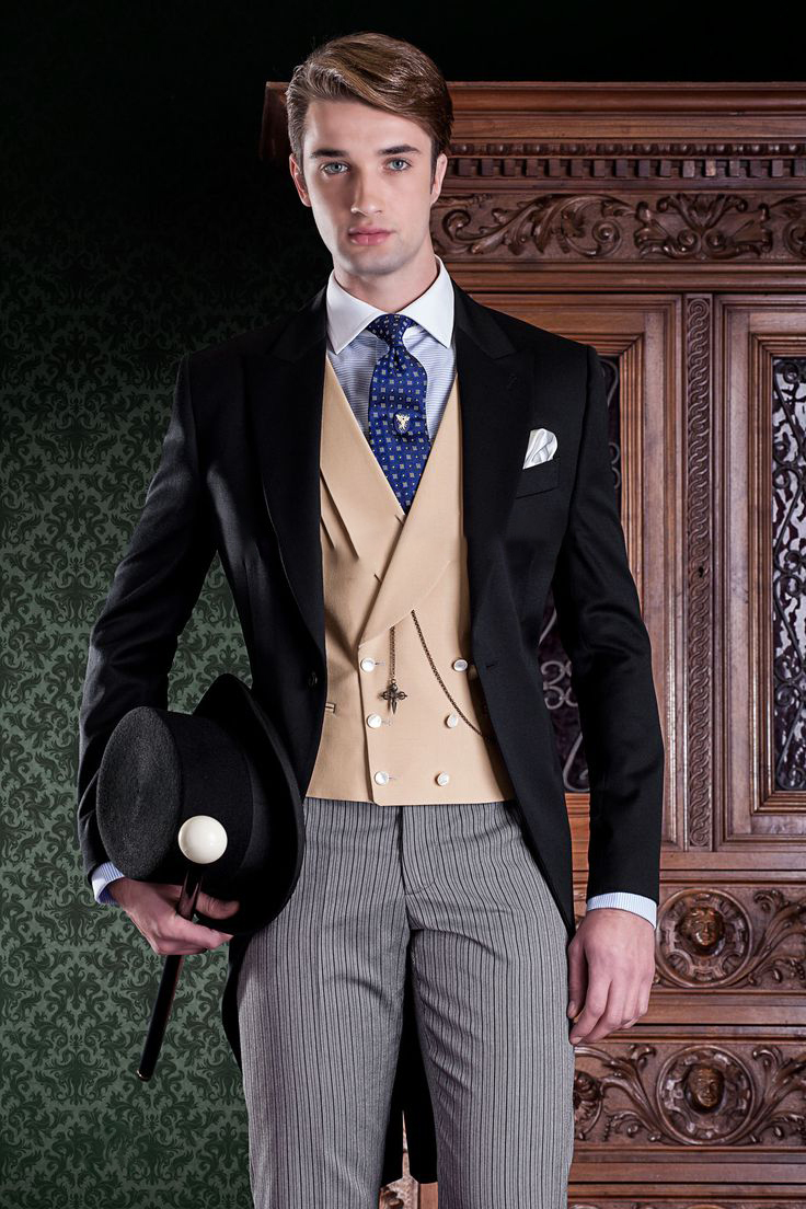 - معطف ذيل كريم. خيار مسائي للرجال الأنيقين. هذا الزي مثالي لحدث غير رسمي.